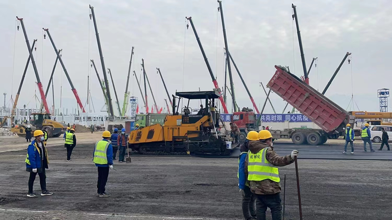 2021年12月29日上午,我公司接到陜建華山路橋的緊急通知,參建西安市高新區(qū)方艙醫(yī)院項目,在疫情蔓延形勢復(fù)雜嚴(yán)峻的情況下,防控工作刻不容緩,我公司立即將參建放艙醫(yī)院作為一項特殊時期重要、緊急、光榮的任務(wù),高度重視、迅速響應(yīng)。各部門職工紛紛主動請纓,積極投身方倉醫(yī)院建設(shè)。由于疫情影響,面對原材料短缺、勞務(wù)人員短缺,我們克服了重重困難,迅速集結(jié)了30余名管理人員組成施工突擊隊,第一時間奔赴現(xiàn)場。當(dāng)天下午4點,組織包括兩臺ABG8620瀝青攤鋪機、同步碎石封層車、雙鋼輪壓路機、膠輪壓路機、及小型前鋼后膠壓路機等機械設(shè)備已進(jìn)入工地現(xiàn)場。同時前場技術(shù)員、施工員、安全員、后勤員、運輸隊均已進(jìn)入各自工作崗位。12月29日起,連夜生產(chǎn)8000余噸二灰碎石混合料,道路面層采用瀝青混合料進(jìn)行鋪設(shè),生產(chǎn)成品瀝青混合料5000余噸,經(jīng)過全體人員不分晝夜,緊張有序的連續(xù)施工,高新區(qū)放艙醫(yī)院項目順利完成。
