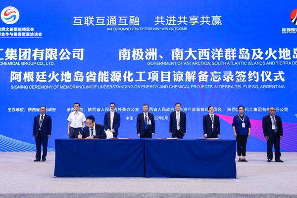 會(huì)上,阿根廷駐華大使牛望道及有關(guān)企業(yè)就阿根廷地方政府與陜西省友城結(jié)好及相關(guān)領(lǐng)域務(wù)實(shí)合作進(jìn)行推介、西咸新區(qū)就整體項(xiàng)目特別是足球中心與阿合作進(jìn)行交流對(duì)接。阿根廷火地島省政府與陜煤集團(tuán)所屬陜西化工集團(tuán)簽署關(guān)于支持在火地島省開(kāi)展能源化工項(xiàng)目的諒解備忘錄;陜煤集團(tuán)與富海集團(tuán)簽署印尼新絲路產(chǎn)業(yè)園項(xiàng)目框架合作協(xié)議;陜煤集團(tuán)榆林化學(xué)榆東科技有限責(zé)任公司與日本宇高株式會(huì)社簽署煤炭分質(zhì)利用制化工新材料示范項(xiàng)目50萬(wàn)噸/年DMC工程合作協(xié)議。