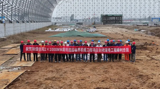 陜煤信電2×1000MW機(jī)組工程封閉煤場(chǎng)大跨度網(wǎng)架項(xiàng)目順利合攏