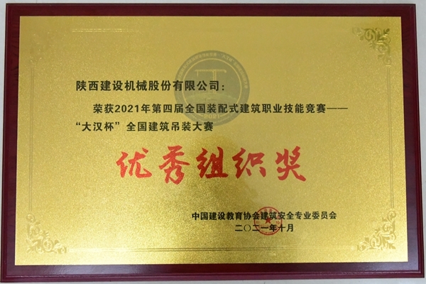 陜建機(jī)股份榮獲2021年第四屆“大漢杯”全國(guó)建筑吊裝大賽優(yōu)秀組織獎(jiǎng)