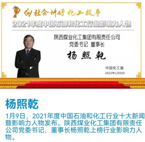 2022年1月9日,由中國石油和化學(xué)工業(yè)聯(lián)合會指導(dǎo),《中國化工報(bào)》社有限公司主辦的“2021年度石油和化工行業(yè)十大新聞暨影響力人物發(fā)布盛典”采用線上直播的形式舉行。陜煤集團(tuán)黨委書記、董事長楊照乾榮膺“2021年度中國石油和化工行業(yè)影響力人物”。發(fā)布盛典上,同時發(fā)布了《2021年度石油和化工行業(yè)責(zé)任關(guān)懷輿情報(bào)告》和2021年度中國石油和化工行業(yè)企業(yè)公民楷模榜,北元集團(tuán)和東鑫垣公司等50家企業(yè)上榜。2021年以來,楊照乾以超前管理、系統(tǒng)思維、戰(zhàn)略思維,帶領(lǐng)全體干部職工勇立行業(yè)前沿,以國有資本投資公司改革為契機(jī),統(tǒng)籌推進(jìn)三項(xiàng)制度和混...