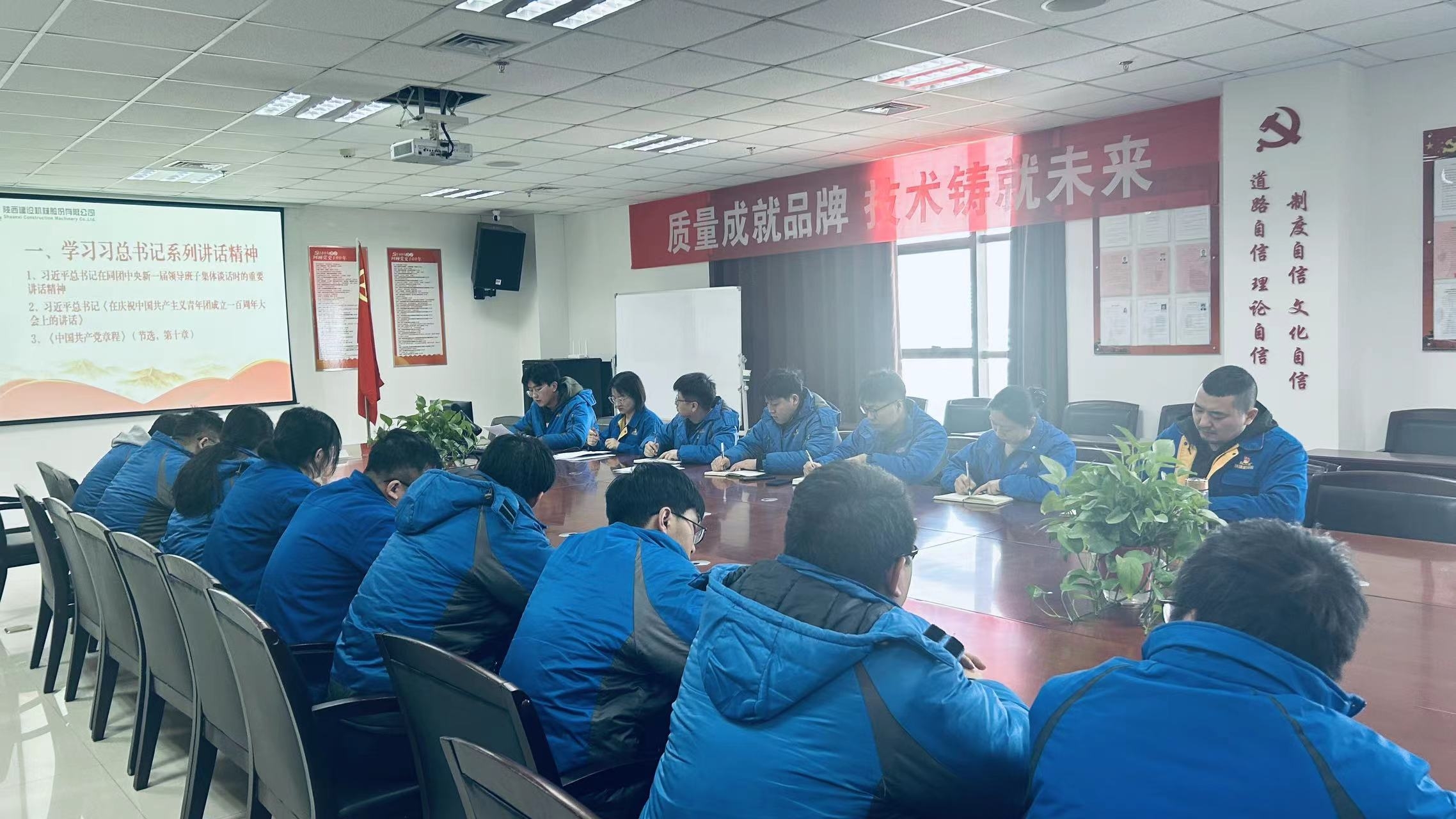 1月11日下午,陜建機(jī)股份工程機(jī)械研究院(以下簡稱研究院)團(tuán)支部在工業(yè)園606會(huì)議室組織召開了團(tuán)員和青年主題教育專題組織生活會(huì)示范會(huì),支部全體團(tuán)員參會(huì),并邀請了公司團(tuán)委副書記、研究院黨支部書記及公司其他團(tuán)支部書記參加。會(huì)上,全體與會(huì)人員集中學(xué)習(xí)了習(xí)近平總書記同團(tuán)中央新一屆領(lǐng)導(dǎo)班子成員集體談話精神、習(xí)近平總書記《在慶祝中國共產(chǎn)主義青年團(tuán)成立100周年大會(huì)上的講話》《中國共產(chǎn)黨章程》(節(jié)選)等內(nèi)容。會(huì)上研究院團(tuán)支部書記匯報(bào)了團(tuán)員和青年主題教育開展情況,2023年研究院團(tuán)支部圓滿完成了陜煤集團(tuán)及公司團(tuán)委安排的主題...